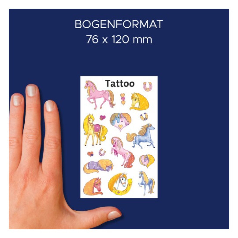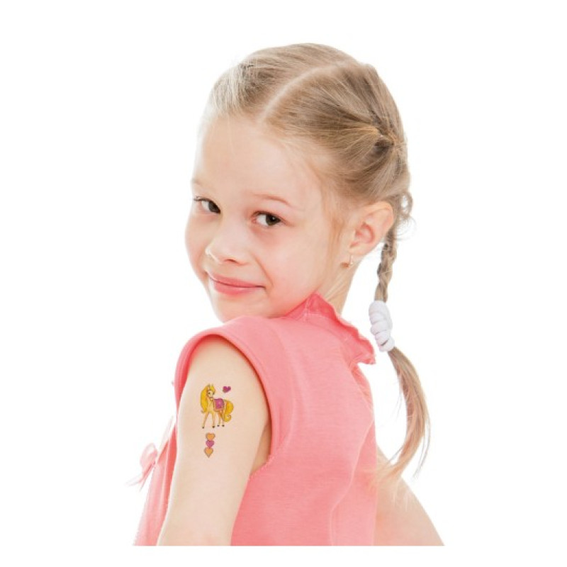• Tetovējumu uzlīmes ar zirgiem. Lieliski piemērotas bērnu tematiskajām vai dzimšanas dienu svinībām. Lietošanas instrukcija: