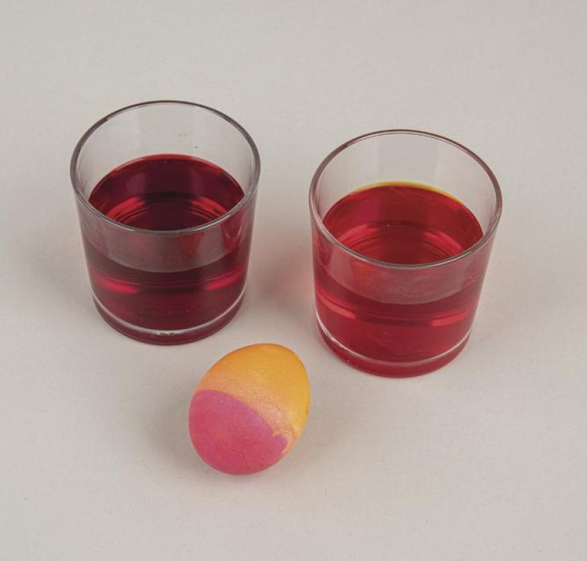 - Silto olu iemērciet sagatavotajā krāsā un atstājiet 3–4 minūtes.