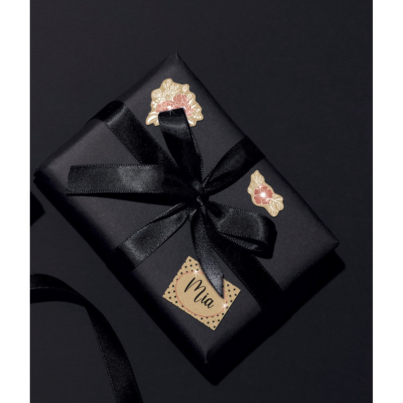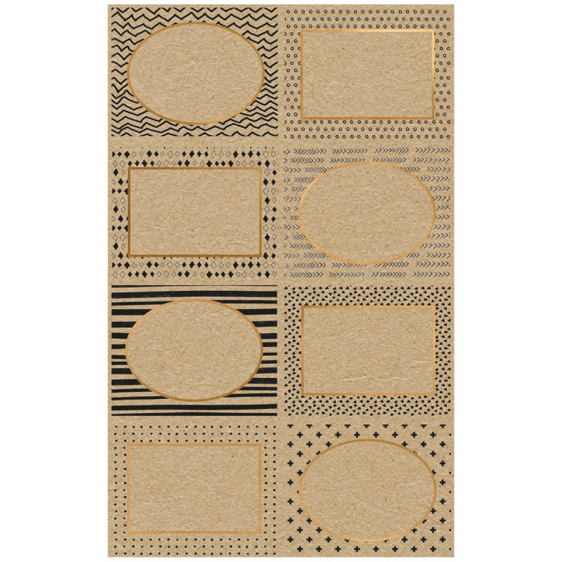 • Uzlīmes etiķetes ar skaistu ornamentu dizainu un zelta krāsas metālisku atspīdumu. Ideāli piemērotas grāmatu, piezīmju bloku vai citu priekšmetu personalizēšanai.